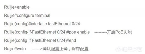 不同廠家POE交換機的配置命令略有不同,通常分為兩步: